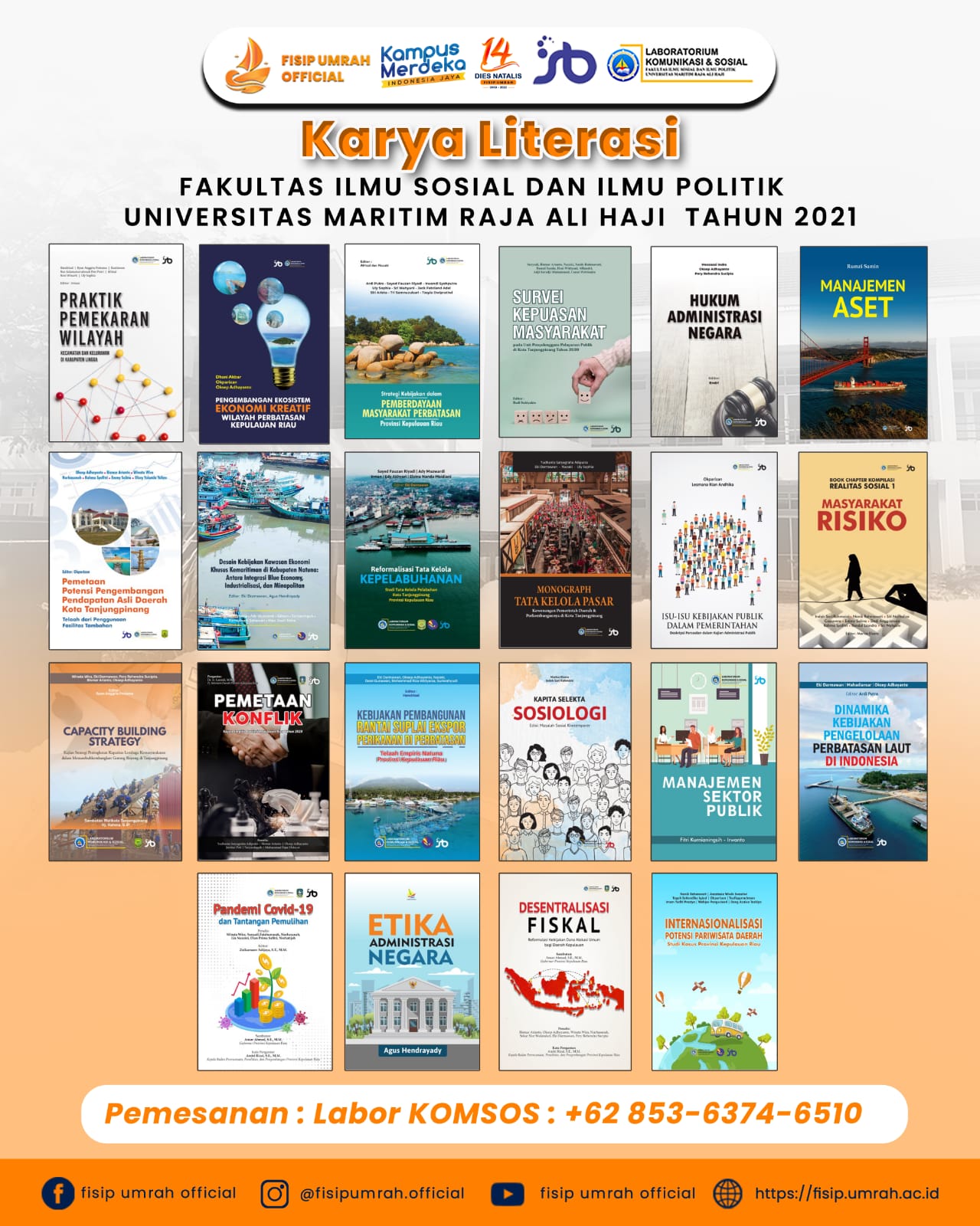 Tanjungpinang (infoluarbiasa.com)-Sebagai perguruan tinggi ternama di Kepri, Universitas Maritim Raja Ali Haji (Umrah) melalui Fakultas Ilmu Sosial dan Ilmu Politik (Fisip) telah menerbitkan puluhan judul buku karya para dosen. Penulisan buku tersebut merupakan wujud tridarma perguruan tinggi, yakni, pengajaran, penelitian dan pengabdian masyarakat.