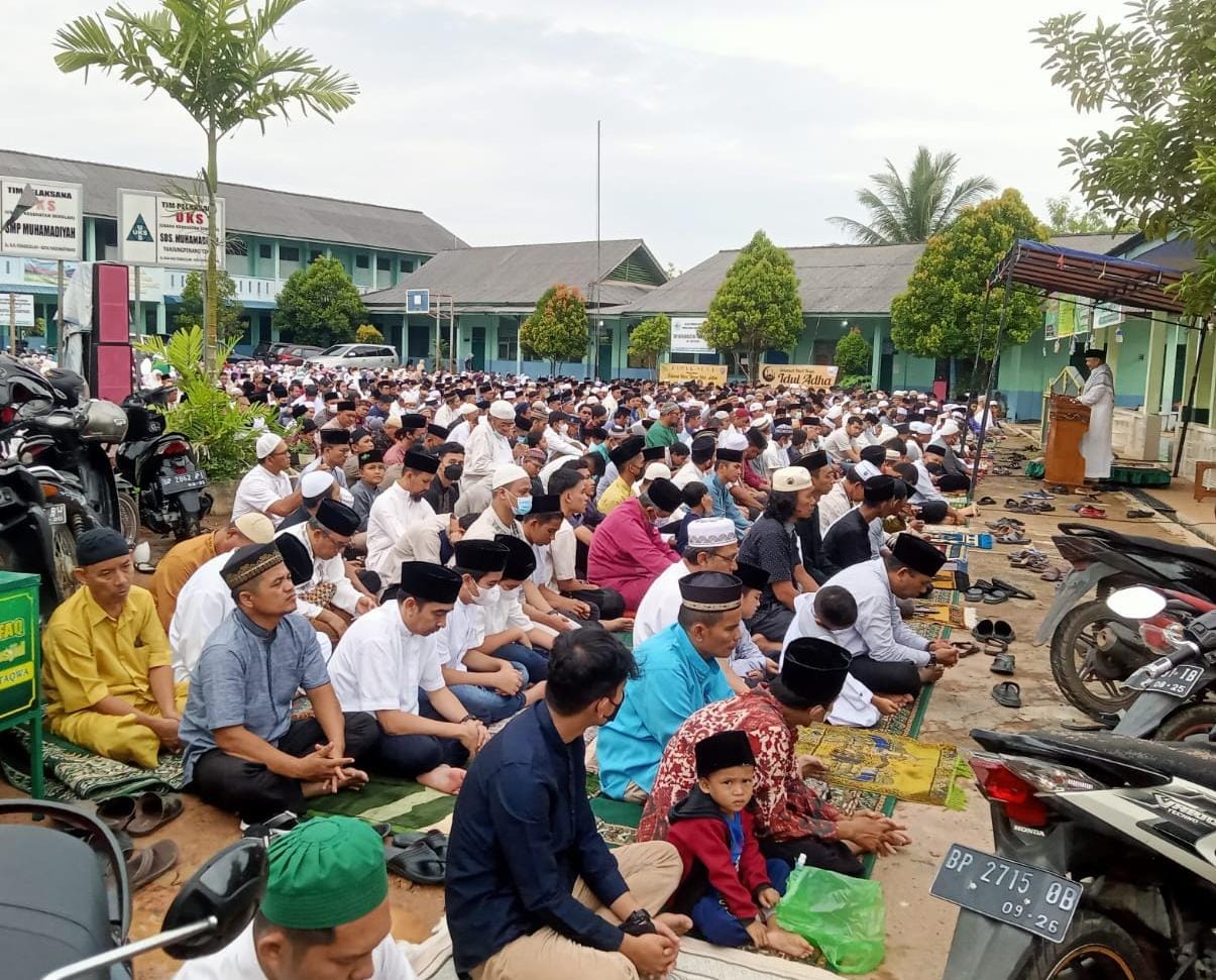 Sejak pukul 06.30 wib, masyarakat sudah berbondong-bondong mendatangi masjid. Mereka datang dengan berjalan kaki, naik sepeda motor dan kendaraan roda empat. Tanah lapang tempat sholat terlihat ramai sejak pagi lantaran jemaah hadir bersama keluarga. Malah ada yang membawa orang tua pakai kursi roda.